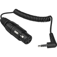 - Coiled connecting cable from an XLR-3 connector to a 3.5 mm jack plug^Connect a Self-Powered Microphone to Your Smartphone^Coiled cable stretches to a full 15.75^Patches a 3-pin female XLR connector to a right-angled 1/8" (3.5mm) TRRS mini jack with iOS compatibility