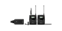 Portable wireless combo set. Includes (1) SK 500 G4 body pack, (1) MKE 2 Gold lavalier microphone (omnidirectional, condenser), (1) SKP 500 G4 plug-on transmitter with phantom power, (1) EK 500 G4 portable camera receiver, (1) 1/8" output cable, (1) XLR balanced output cable and (1) camera mount, frequency + (470 - 558 MHz).