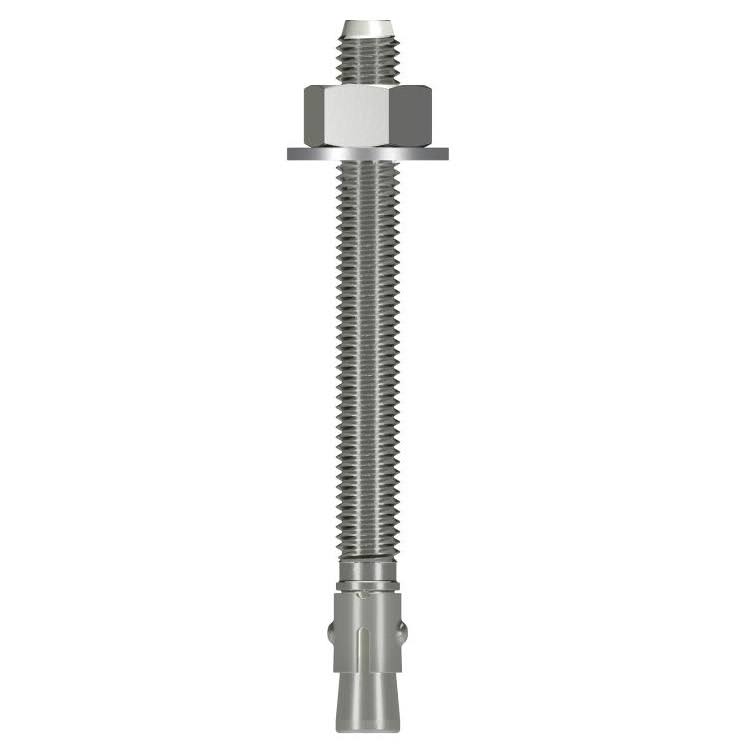 The 303 Stainless Steel Wedge-All Anchors are a non-bottom bearing, wedge-style expansion anchor for use in solid concrete or grout filled concrete masonry in corrossive environments. A one-piece clip ensures uniform holding capacity that increases as tension is applied. The threaded stud version is available in eight diameters and multiple lengths.