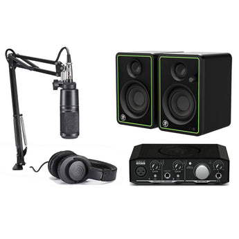 - Audio-Technica/Mackie Professional Home Studio Starter Kit - AT2020 Microphone, M20x Monitor Headphones with Mackie CR3-X Moniter Speakers and Mackie Onyx Artist Interface