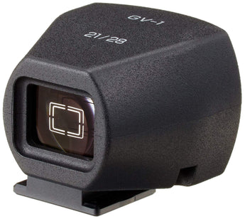 The GV-1 External Viewfinder for more comfortable framing.... LCD's on digital cameras are not always ideal for monitoring dark environments and fast-moving subjects. But the GV-1 optical viewfinder solves this problem. It mounts on the hot shoe almost directly above the lens and offers a framing guide for capturing a 21mm-equivalent field of view when using the optional GW-1 21mm wide conversion lens.