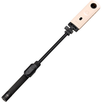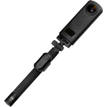 Compatible with Ricoh THETA Z1, V, and SC2 cameras, the TR-1 Bluetooth Remote enables you to wirelessly start and stop your camera with the touch of a button. This controller features a range of up to 33', up to 100 days use on a single CR2032 battery, and a slim, splash-proof design. It comes with a holder for mounting on a TM-2 or TM-3 selfie stick for easy one-handed operation.